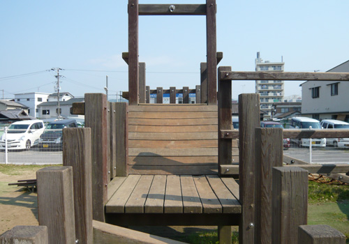 中之島ロータリーと地蔵の辻交差点の中間の住宅街にある公園、「中之島第2公園」は、アスレチック複合遊具の楽しい公園です。滑り台やブランコもあり、横の広場ではのびのび遊べるスペースも。
