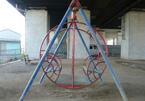 和歌山市松島の、高速道路の下にある公園。やや薄暗いながらも砂場や遊具があり、雨の日や日ざしのきつい夏などに子供たちを遊ばせるのには絶好のスポットです。