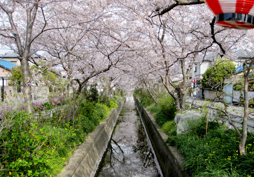 和歌山市川永の団地にある川は、春になると桜並木がとってもきれいです。