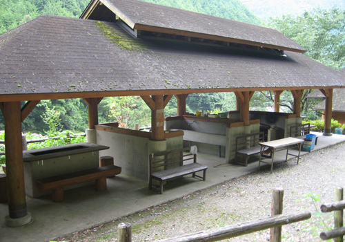 施設 温泉館(管理棟)/炊事棟/バーベキュー棟2面/温水シャワー棟/トイレ2箇所(水洗)(バリアフリートイレ有)/水道/貸しテント/バンガロー/オートキャンプ/炊事場/レンタル用品/管理棟
