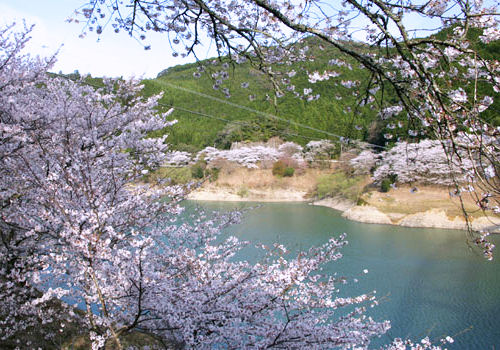 春、鳥のさえずりが響き渡る静かな湖畔では、蒼い湖面と山々の緑、湖岸周囲約5kmにわたりソメイヨシノ3000本の桜の花々と美しい景観が楽しめ、桜まつりも行われる。
