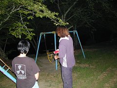 しばらく行くと、暗闇からブランコ発見!